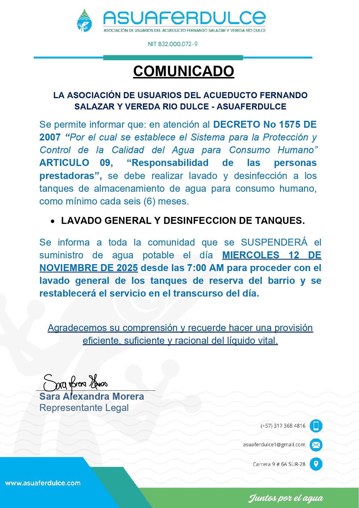 Asuaferdulce, comprometida con el suministro responsable de agua para nuestra comunidad.
