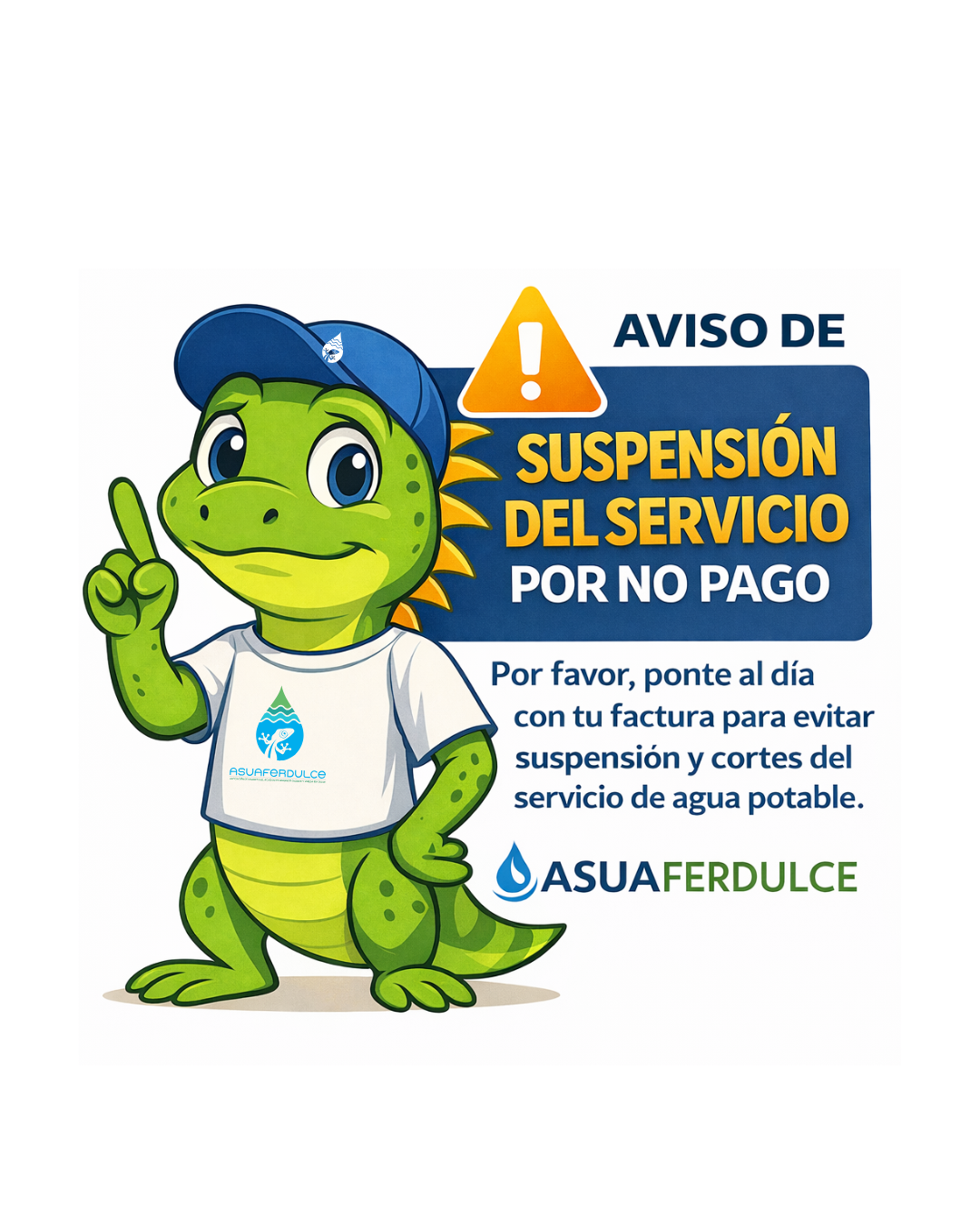 Asuaferdulce informa a sus suscriptores que mañana, se realizará la suspensión del servicio de agua potable a quienes presentan facturas vencidas sin pago. Invitamos a la comunidad a ponerse al día oportunamente y así evitar cortes en el servicio.📢📢💦