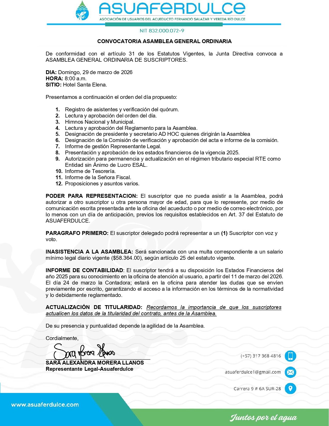 📢💦Convocatoria a Asamblea General Ordinaria de Suscriptores – Asuaferdulce📢💦