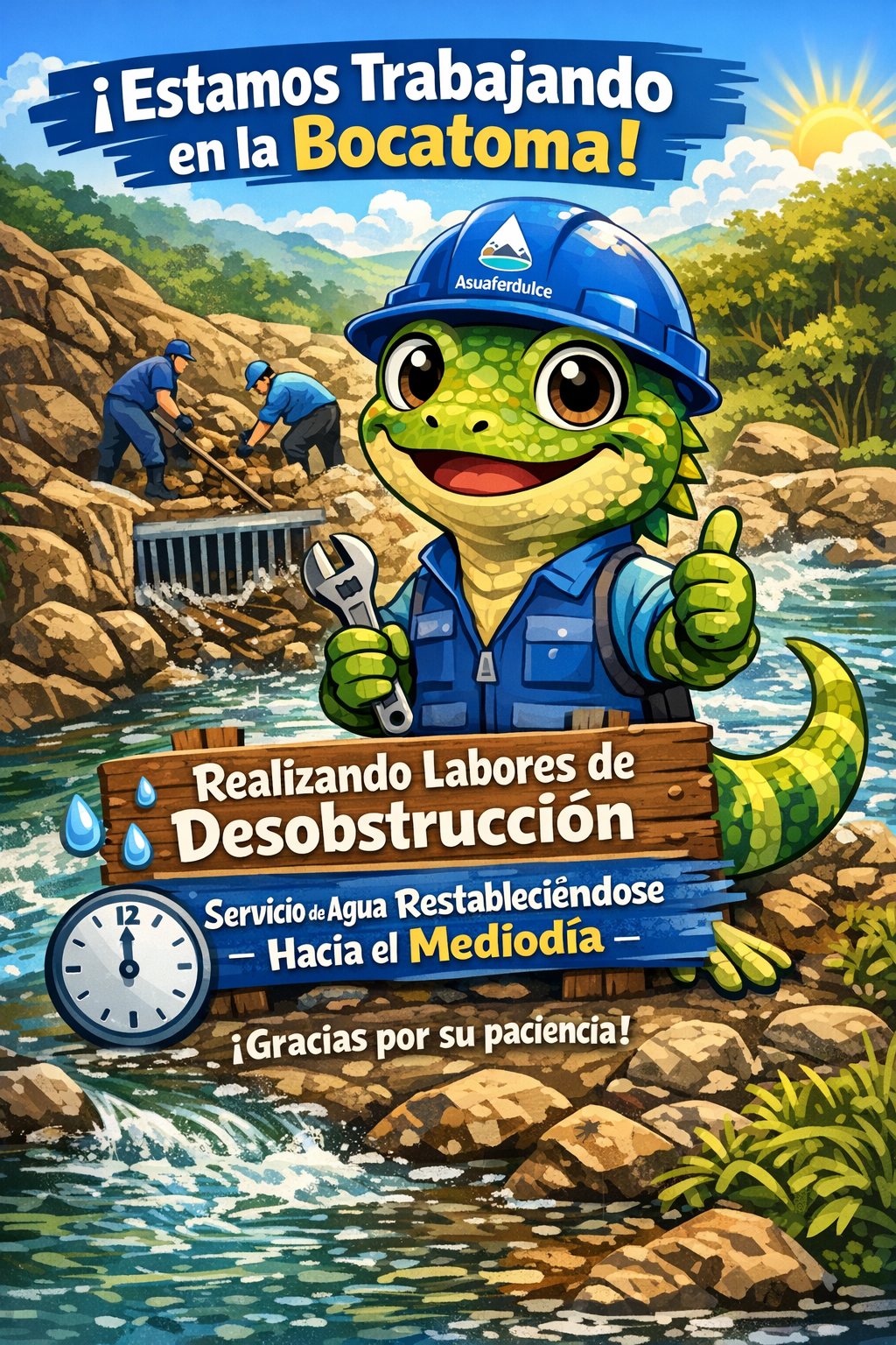 Nuestra mascota nos recuerda que es importante estar informados. Muy pronto tendremos una suspensión temporal del servicio para realizar labores de mantenimiento que garantizan agua limpia, segura y de calidad para todos. 💧